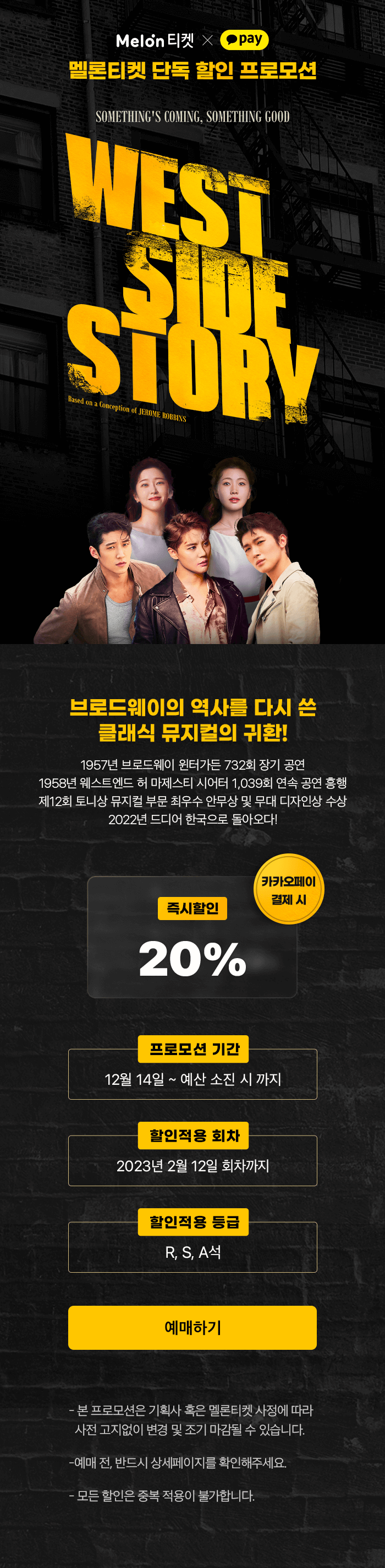 [멜론티켓 단독] 뮤지컬 웨스트 사이드 스토리 카카오페이 할인 프로모션