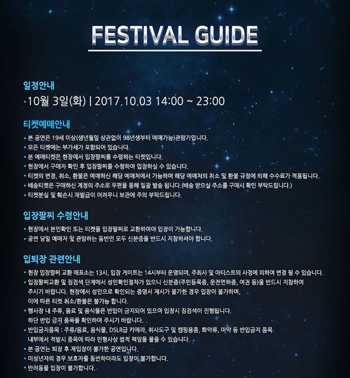 | 유효기간(이용조건) | 2017.10.03 - 2017.10.03 (예매한 공연 회차에 한해 이용가능) | ||||||||||||