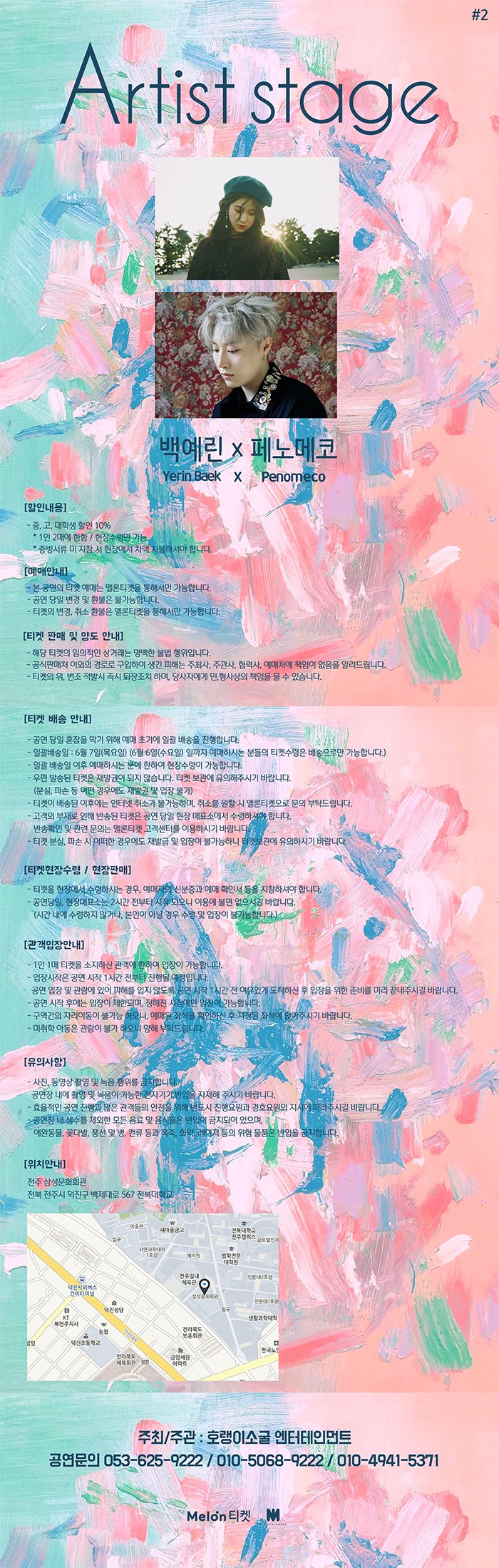 안녕하세요. “Artist stage#2 백예린,페노메코” 공연제작사입니다.