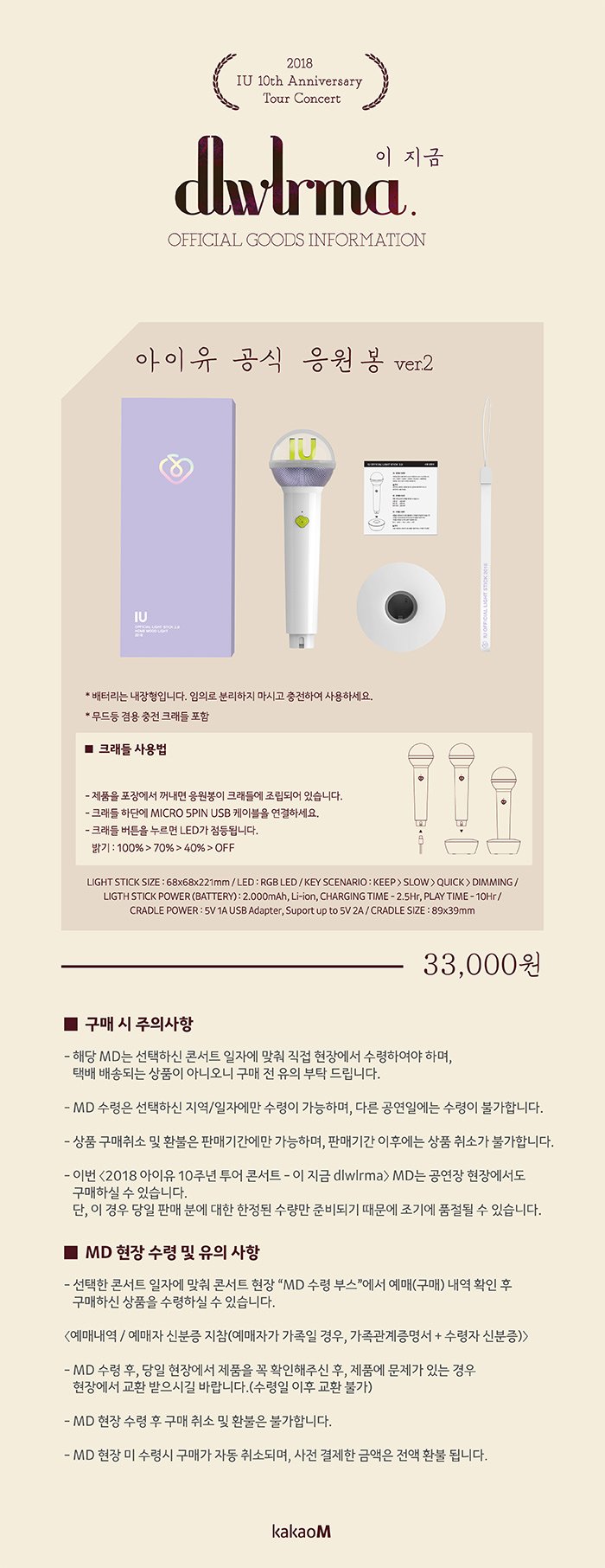 품명 및 모델명 : 2018 아이유 투어 콘서트 MD-공식 응원봉 ver.2