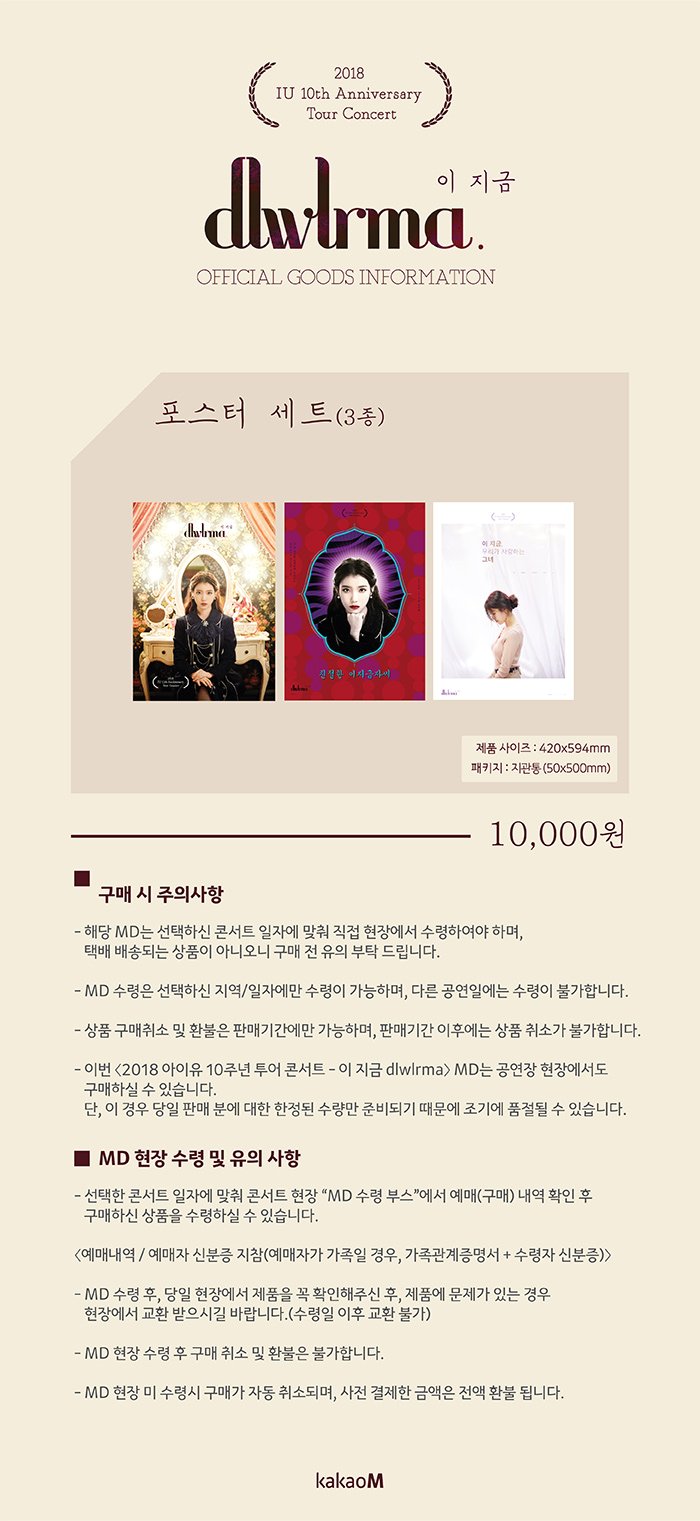 품명 및 모델명 : 2018 아이유 투어 콘서트 MD - 포스터 세트