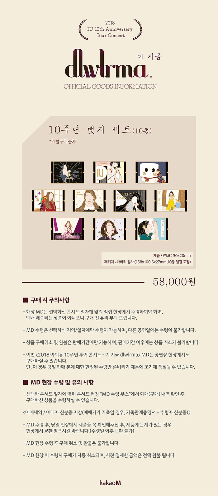 품명 및 모델명 : 2018 아이유 투어 콘서트 MD - 10주년 뱃지 세트