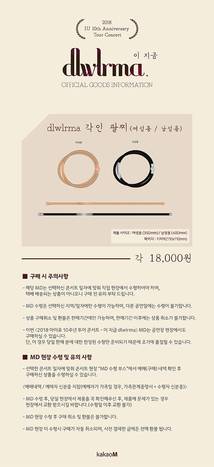 품명 및 모델명 : 2018 아이유 투어 콘서트 MD - dlwlrma 각인 팔찌