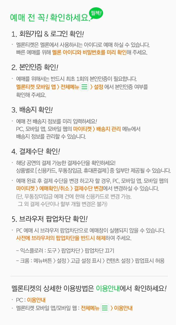 * 멜론티켓 이용약관 제19조에 따라, 부정한 방법으로 예매 하거나 관람목적이