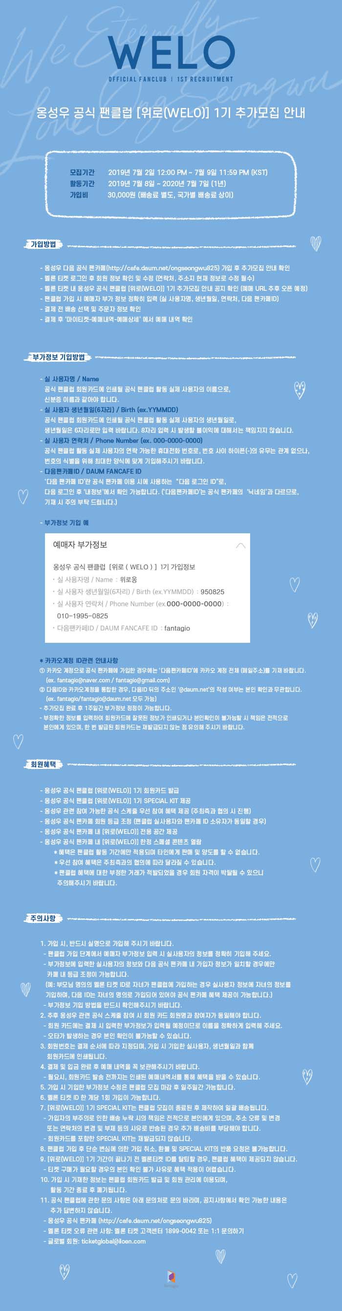 〈옹성우 공식 팬클럽 [위로(WELO)] 1기 추가모집 부가정보 정정 안내〉