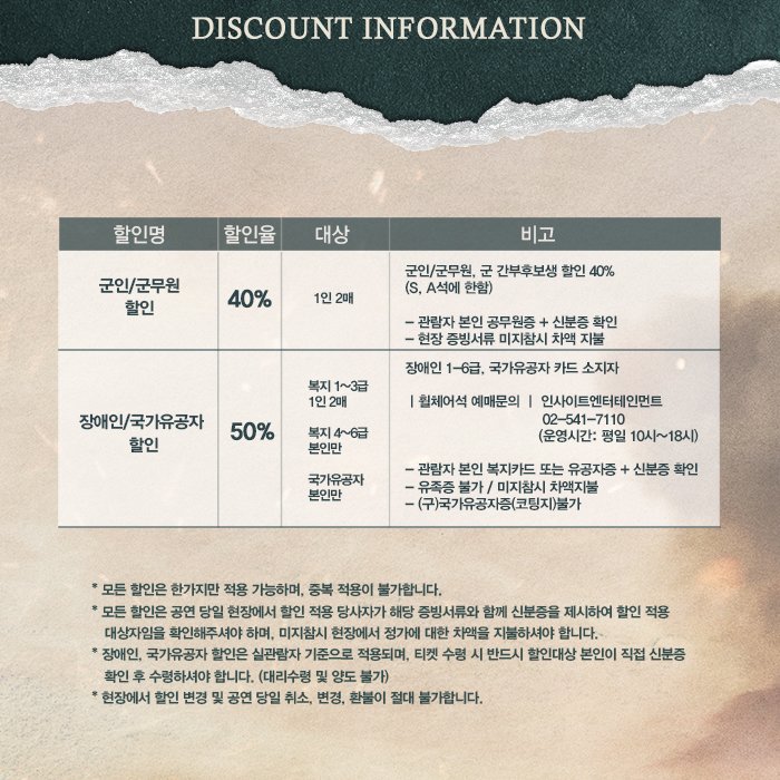 ※ 마지막 티켓오픈 공연 기간 : 2019년 11/19(화) ~ 12/01(일)