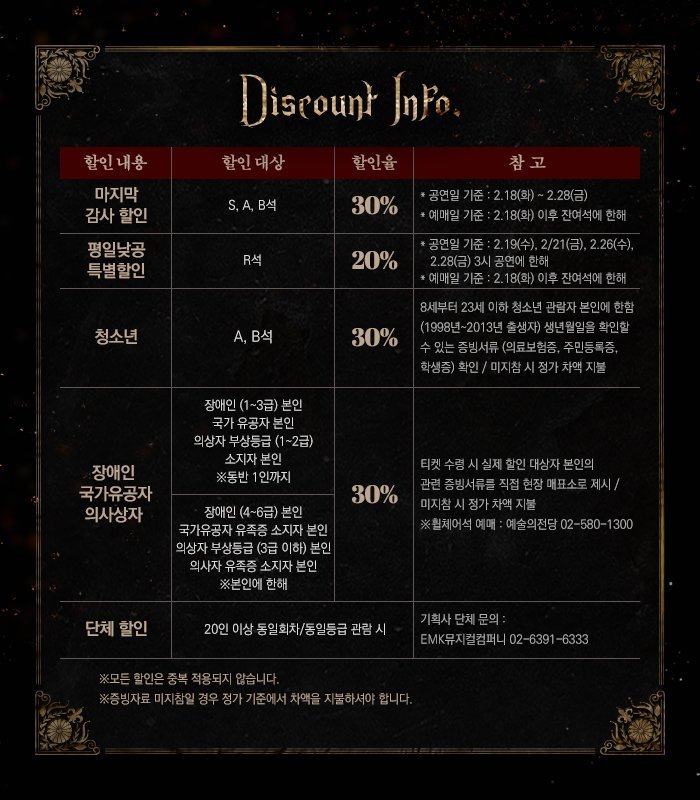 | 주최 / 기획 | (주)이엠케이뮤지컬컴퍼니 | ||||||||||||