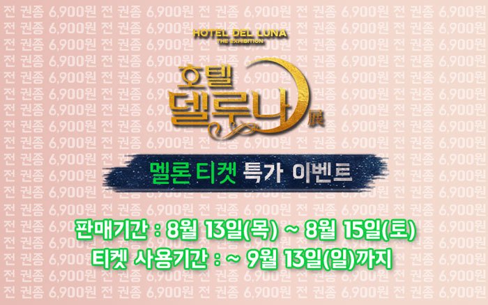 - 멜론 온라인 10% 할인: 성인 13,500원/ 학생 10,800원/ 어린이 9,000원(예매기간: 6월 1일~10월 4일까지)