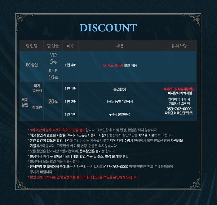 ※ 예매 및 관람 전 반드시 공지사항을 숙지 하시기 바랍니다.