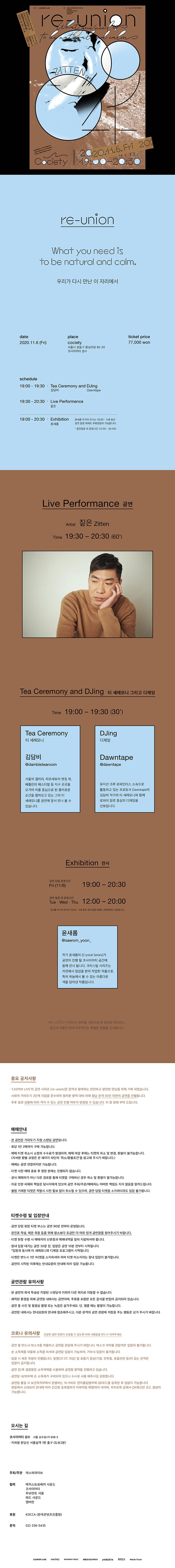 본 [re-union] 시리즈는 다가올 가을, 철저한 방역 대비 아래 진행 될 예정입니다.