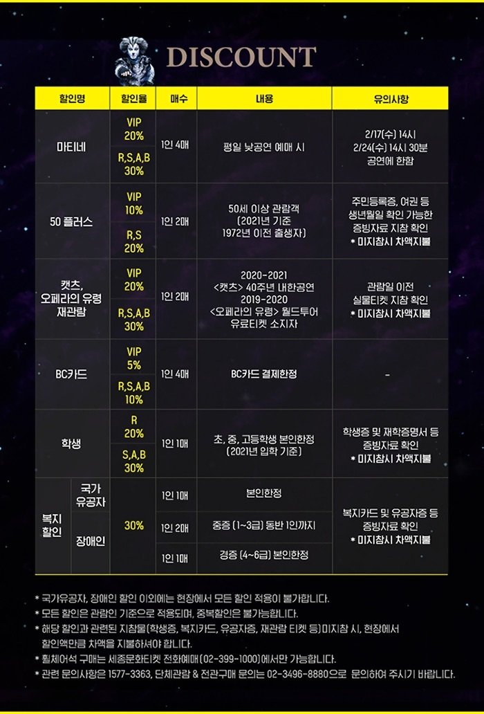 | 유효기간(이용조건) | 2021.01.22 - 2021.02.28 (예매한 공연 회차에 한해 이용가능) | ||||||||||||