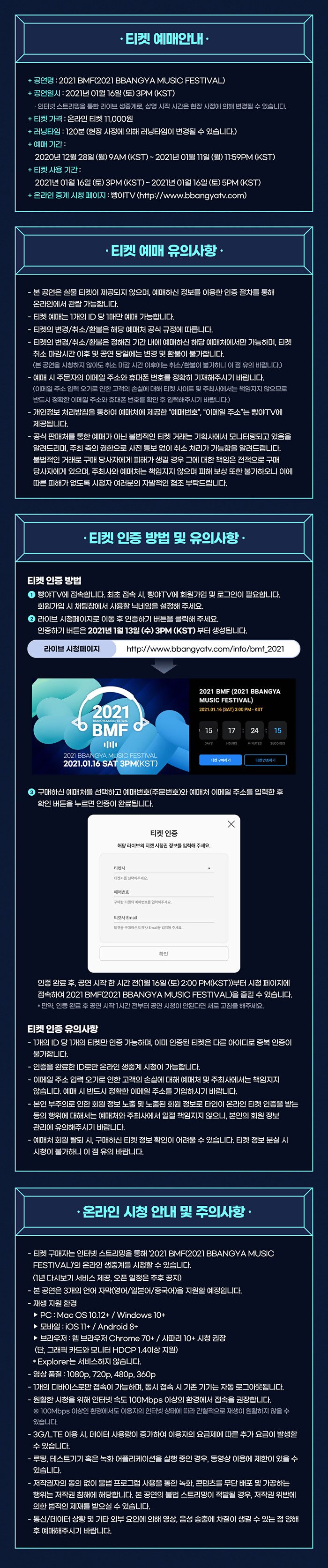 * 이메일 주소는 '2021 BMF(2021 BBANGYA MUSIC FESTIVAL)' 예매 확인 메일이 전송된 메일 주소를 입력하셔야 합니다