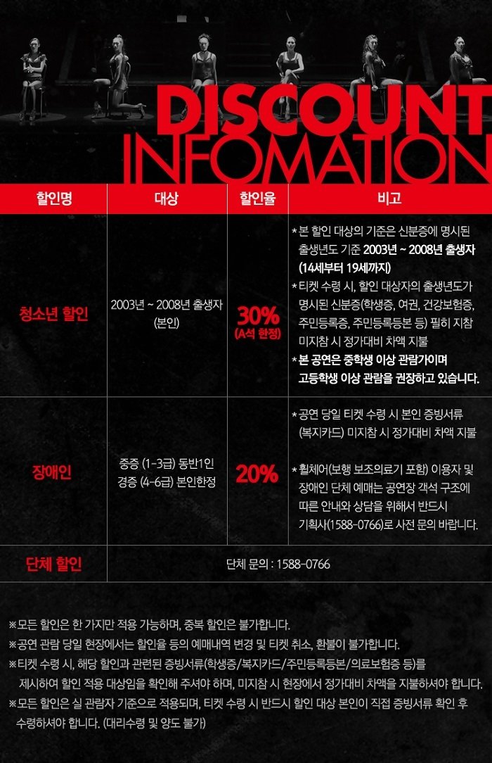 ※ 할인된 금액으로 예매를 하셔야 하며 정가로 예매된 티켓은 현장에서 할인 받으실 수 없으니 예매 시 유의바랍니다.
