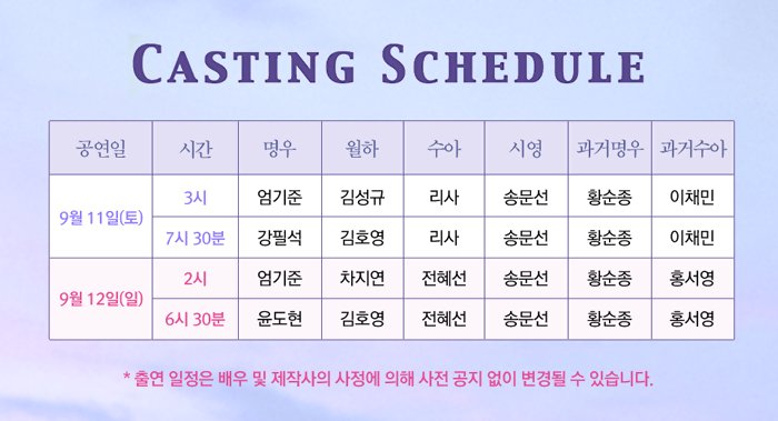 토 오후 3시, 7시 30분 / 일 오후 2시, 6시 30분