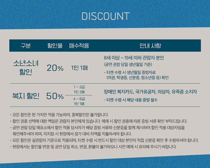 ※ 휠체어석 예매는 기획사(02-794-0923)로 문의바랍니다.