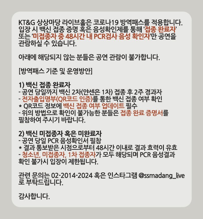 ※ 티켓오픈 : 2021년 11월 16일(화) 오후 6시