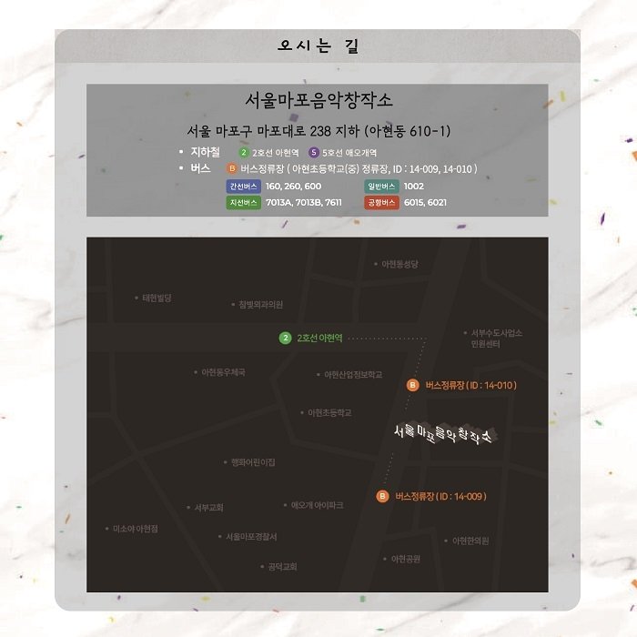 | 이용가능 장소 | 서울마포음악창작소 라이브홀 | ||||||||||||