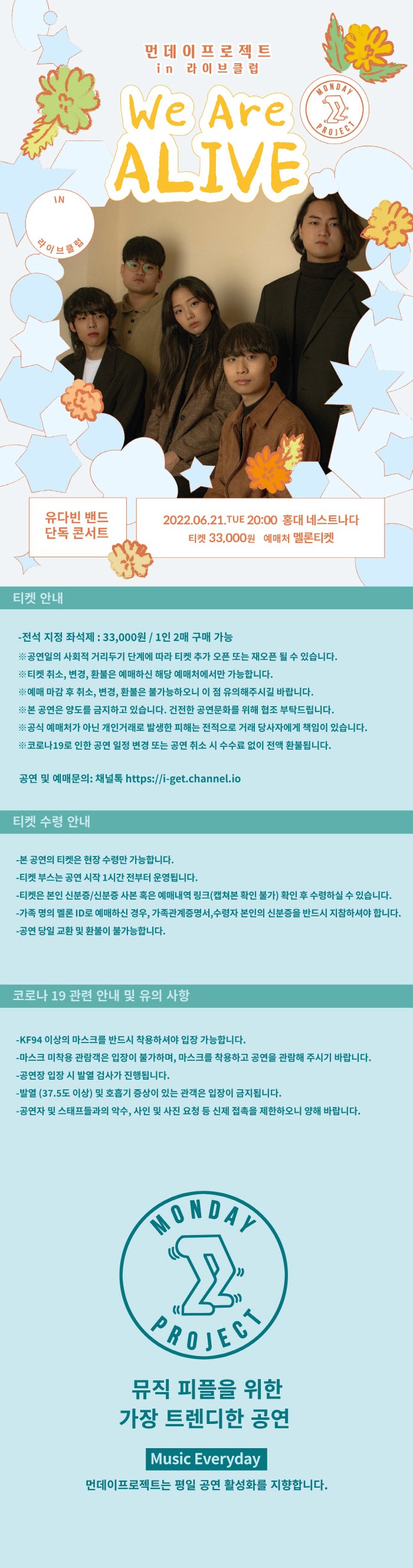 먼데이프로젝트 in 라이브클럽 [유다빈밴드 단독 콘서트]에 관심 가져 주신 분들께 진심으로 감사드립니다.