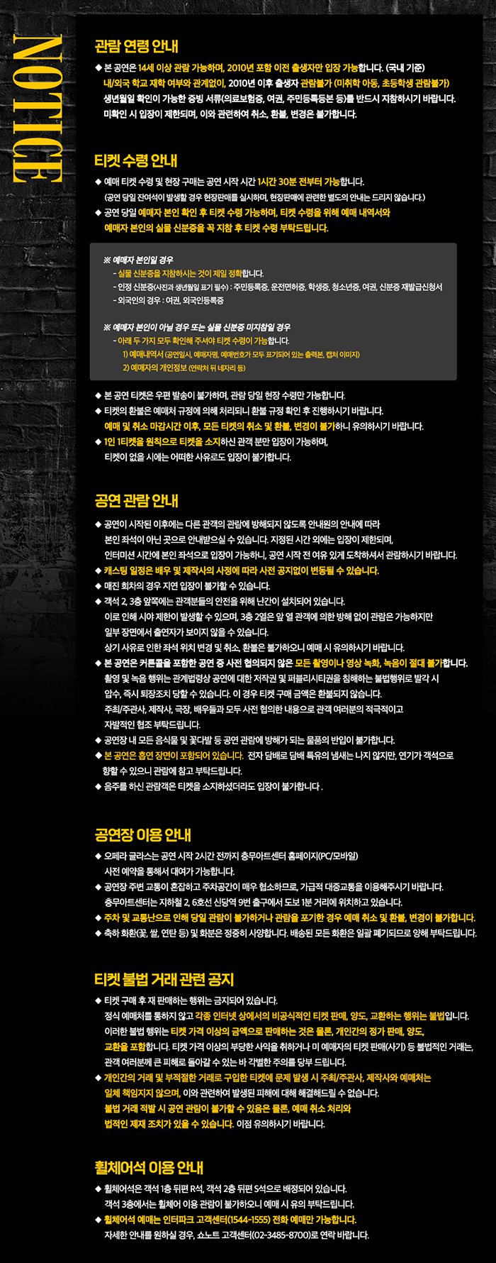 * 멜론티켓 이용약관 제19조에 따라, 부정한 방법으로 예매 하거나 관람목적이