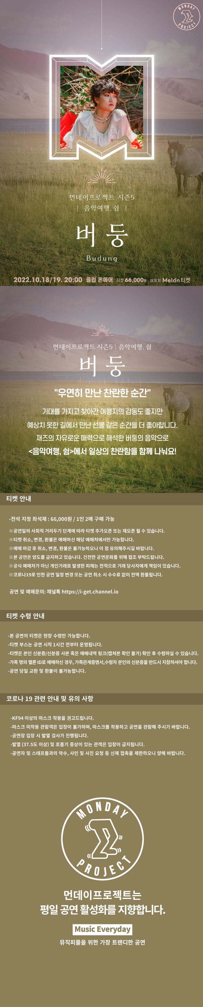 인증예매먼데이프로젝트 시즌5 음악여행,쉼[버둥 단독 콘서트]