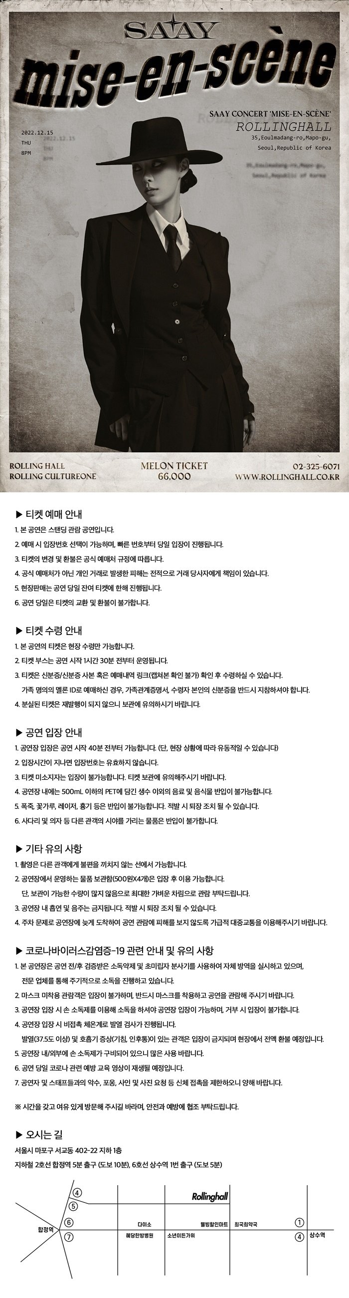 안녕하세요, 〈SAAY 단독 콘서트 : mise-en-scène〉 주최/주관사 롤링홀입니다.