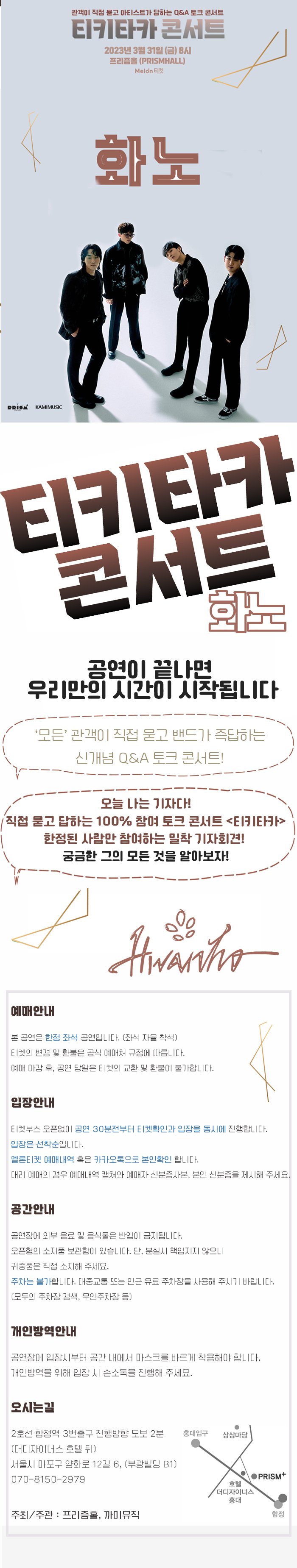 2023 가장 주목받는 밴드 화노!한마디도 놓칠 수 없는 우리만의 이야기!공연이 끝나면 우리만의 시간이 시작됩니다.