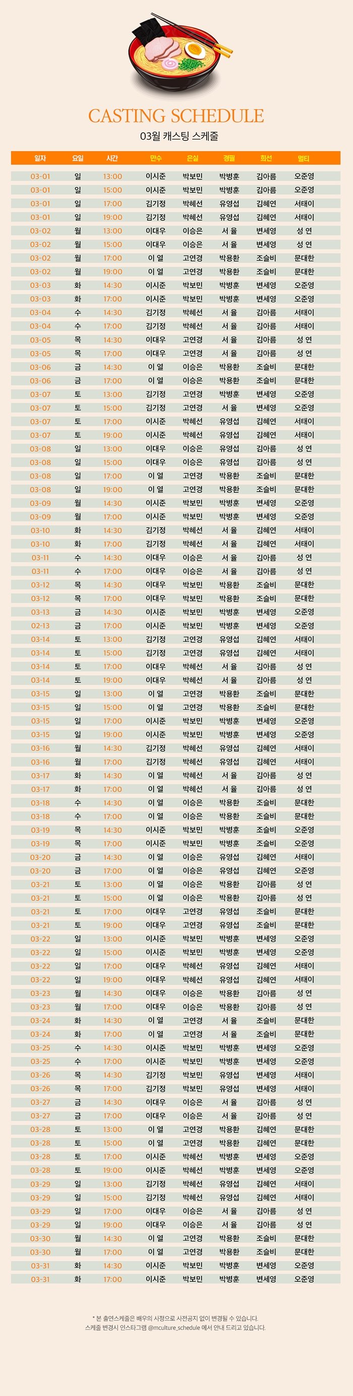 | 유효기간(이용조건) | 2023.03.20 - 오픈런 (예매한 공연 회차에 한해 이용가능) | ||||||||||||