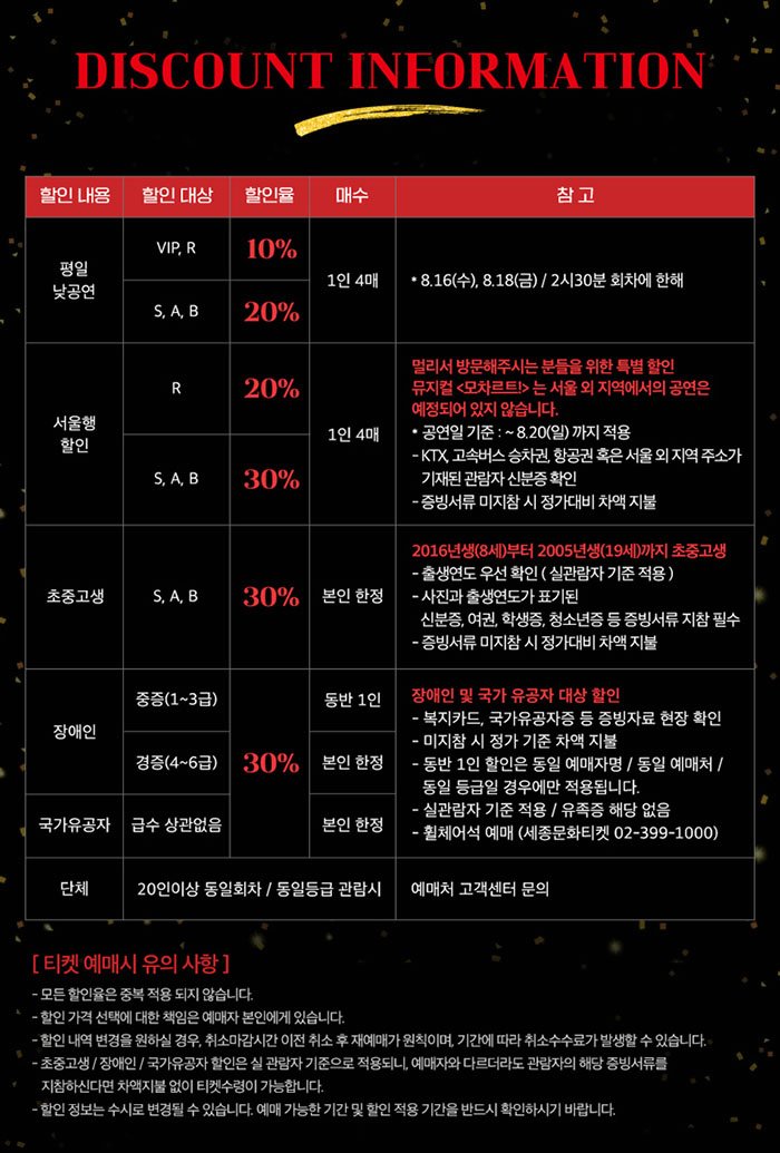 | 주최 / 기획 | (재)세종문화회관, EMK, ㈜카카오엔터테인먼트 | ||||||||||||