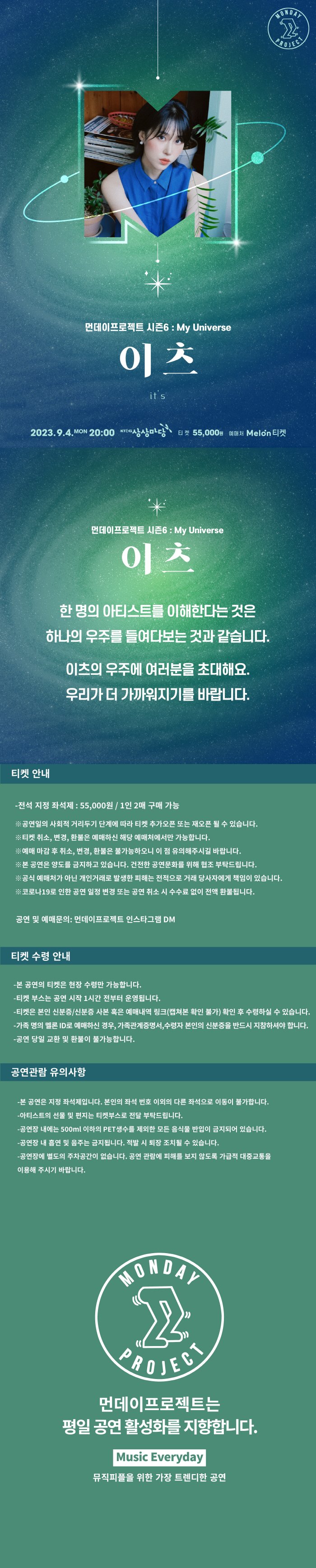 | 공연 관련 문의 | 먼데이프로젝트 인스타 DM | ||||||||||||