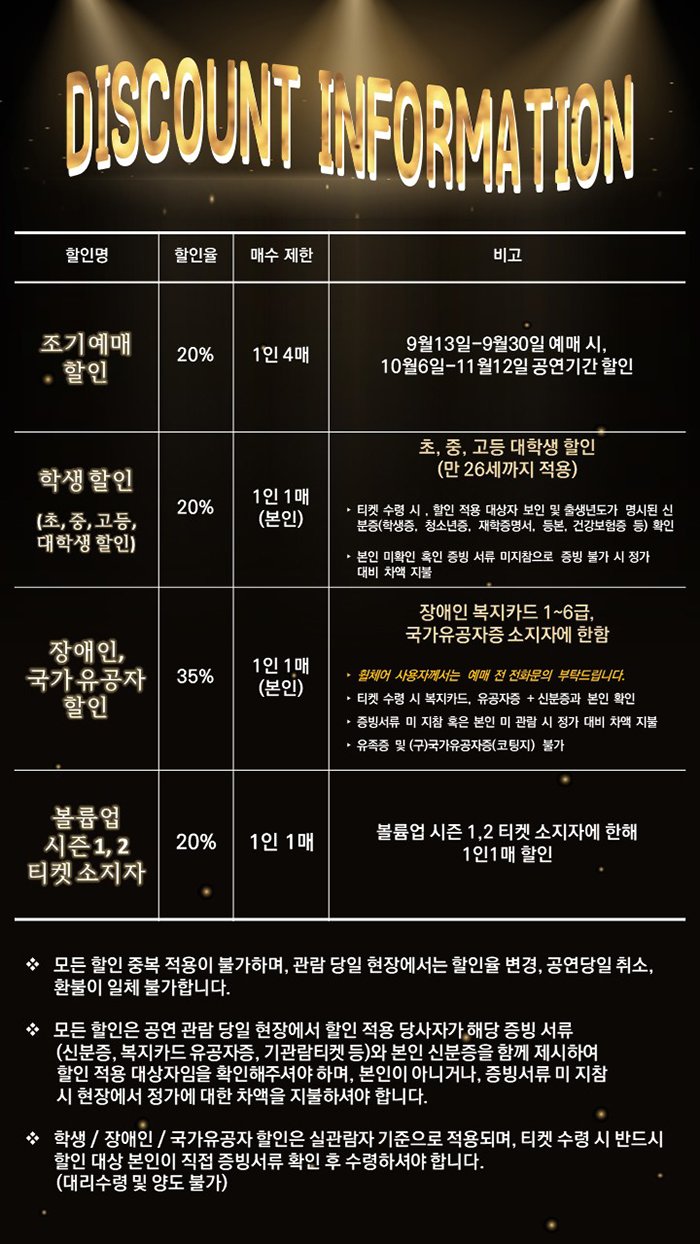 ※ 휠체어석은 기획사(010-2482-6780) 통한 전화예매만 가능합니다.