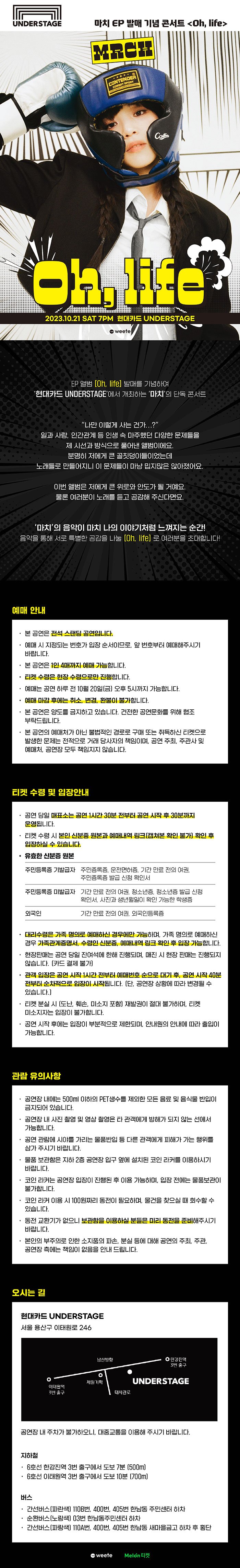 EP앨범[Oh,life]발매를 기념하여 ‘현대카드 UNDERSTAGE’에서 개최하는 단독 콘서트