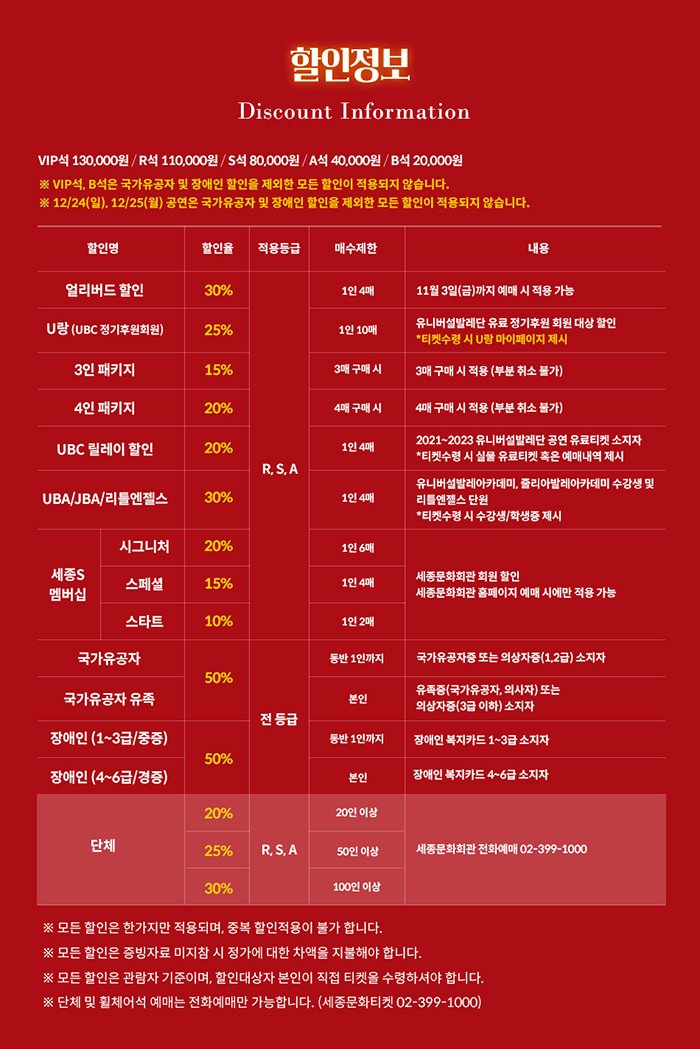 | 유효기간(이용조건) | 2023.12.21 - 2023.12.31 (예매한 공연 회차에 한해 이용가능) | ||||||||||||