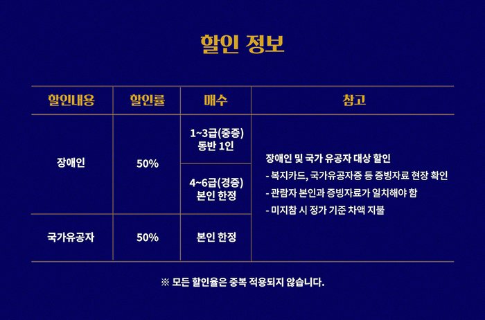※ 휠체어석 예매는 티켓오픈시부터 멜론티켓 고객센터를 통해서만 예매 가능하오니, 예매 시 참고하시기 바랍니다.