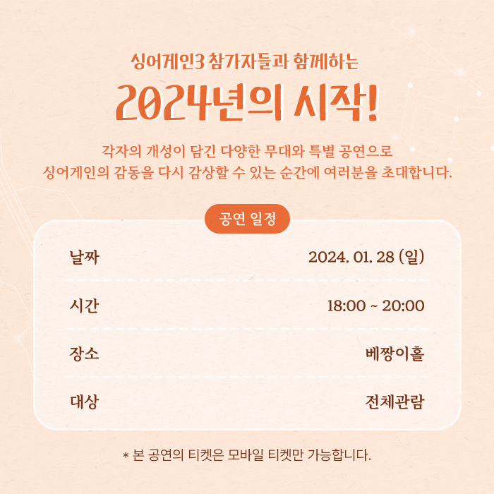 ※ 티켓오픈 : 2024년 1월 4일(목) 오후 8시