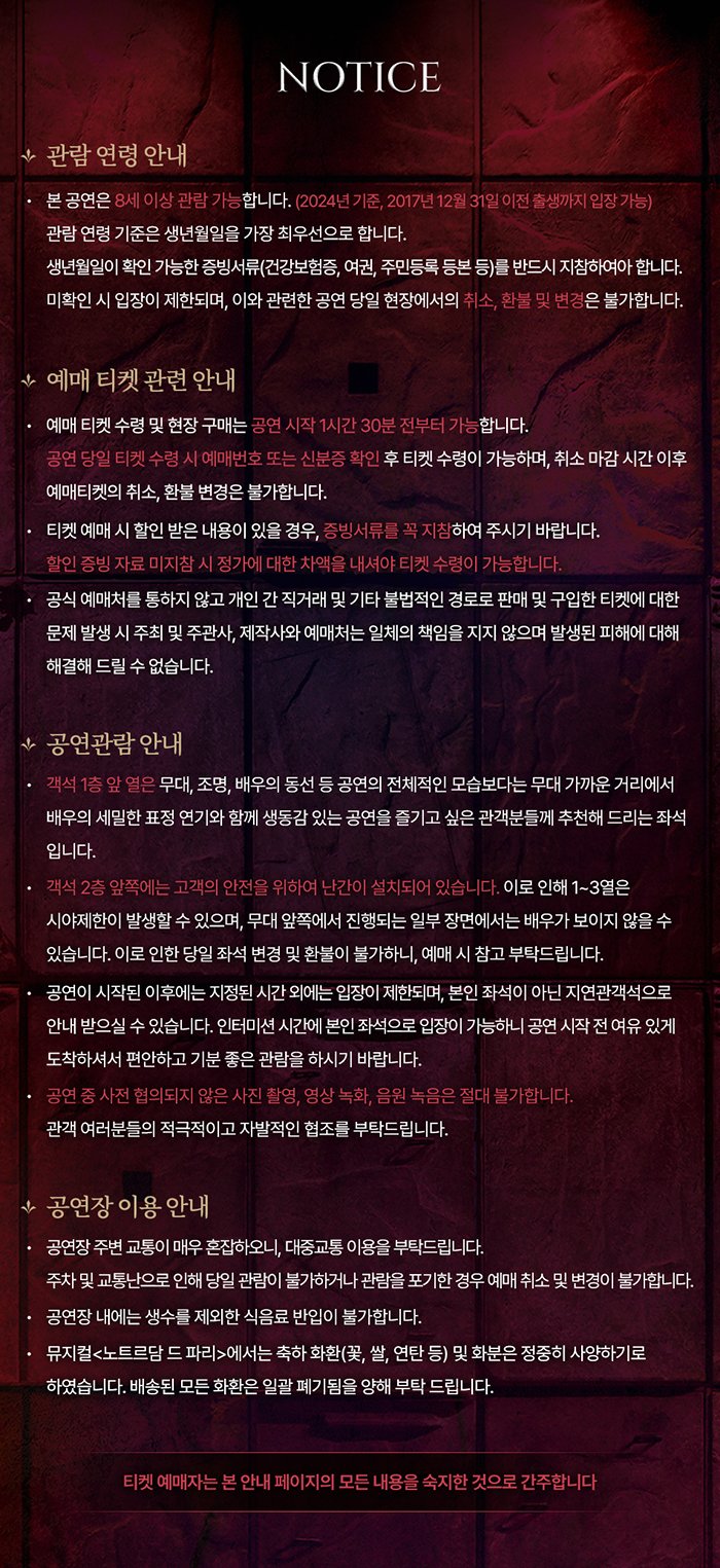 | 유효기간(이용조건) | 2024.05.03 - 2024.05.05 (예매한 공연 회차에 한해 이용가능) | ||||||||||||