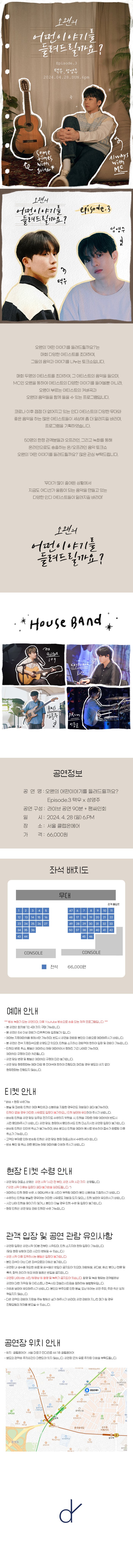 4월 16일 화요일 7시에 예정이었던 공연이 공연장의 내부 사정으로 인하여, 4월 28일 일요일 6시로 공연이 연기 되었습니다. 해당 소식을 전하게 되어 송구스러우며, 기존 예매자분들에 대한 피해가 없도록, 별도의 추가 티켓팅 없이 날짜만 변경된 채로 구매하신 예매 좌석은 그대로 정리가 될 예정이며, 취소를 진행할 경우 수수료 없이 전액 환불 조치를 드릴 예정입니다.