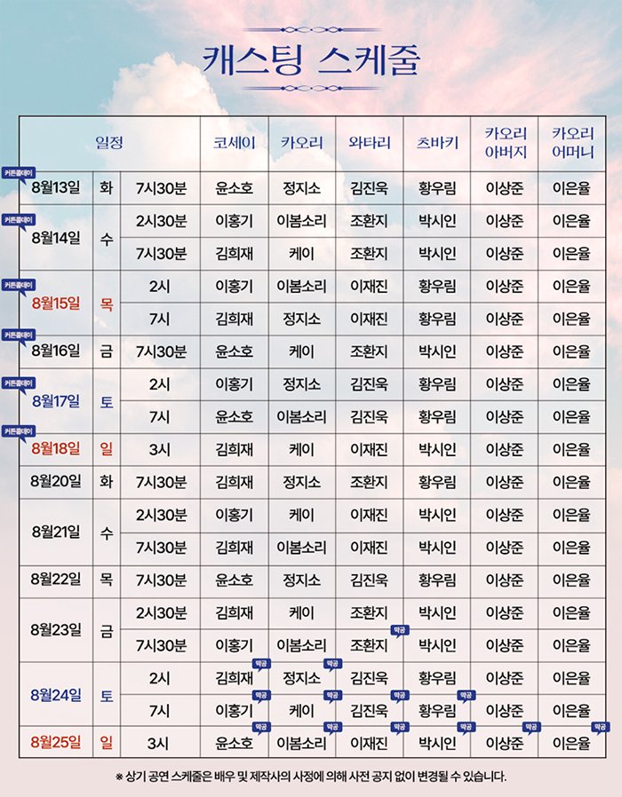※ 마지막 티켓오픈 : 2024년 7월 9일(화) 오전 11시
