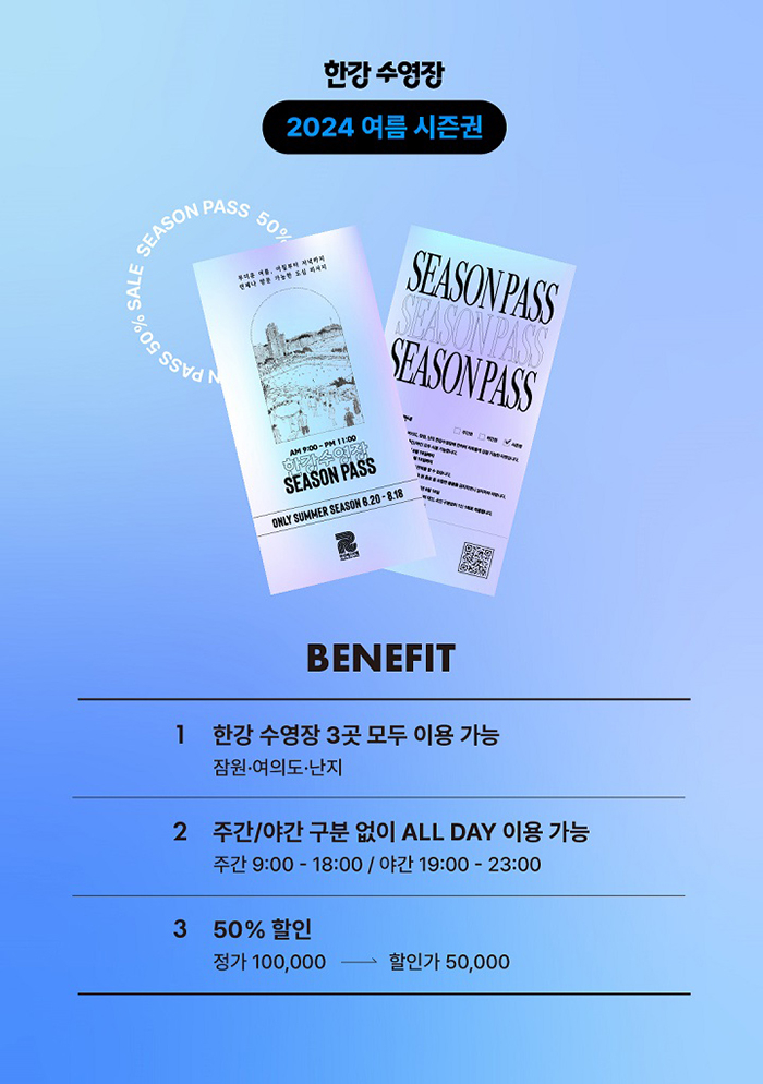 ※ 시즌권은 주간/야간 관계없이 세 개 수영장에서 기간 내 무제한 사용 가능한 티켓입니다.