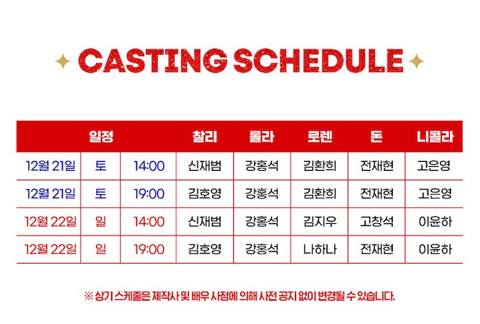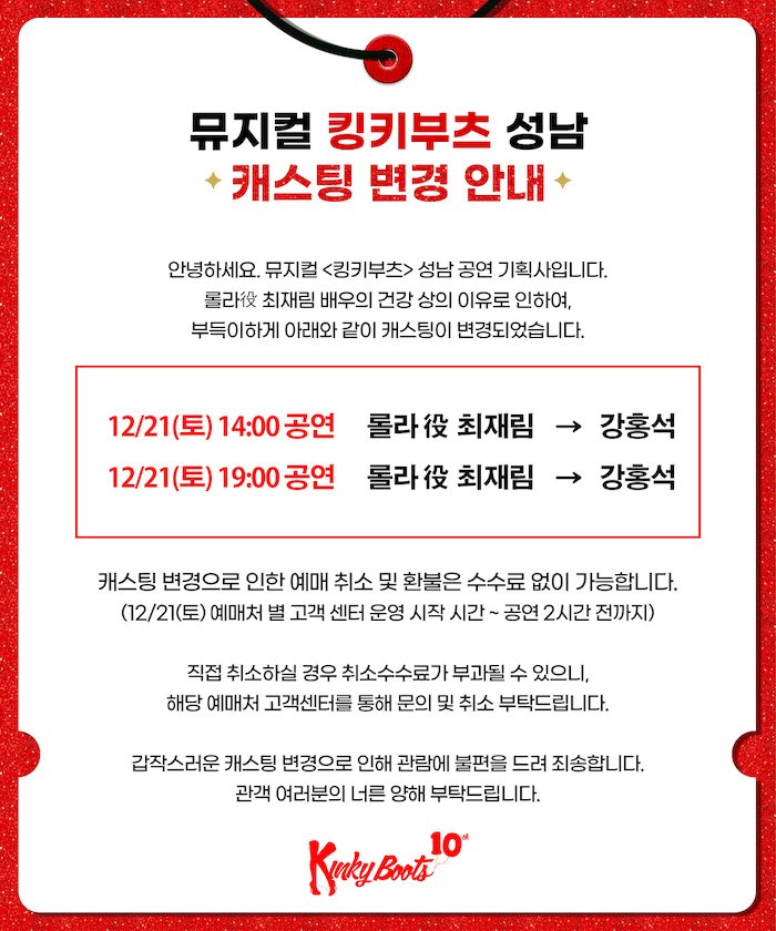 갑작스러운 캐스팅 변경으로 인해 관람에 불편을 드려 죄송합니다.