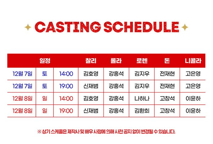 롤라 役 서경수 배우의 건강 상의 이유로 인하여, 부득이하게 아래와 같이 캐스팅이 변경되었습니다.