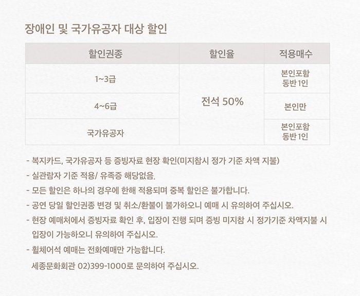 | 이용가능 장소 | 세종문화회관 S씨어터 | ||||||||||||