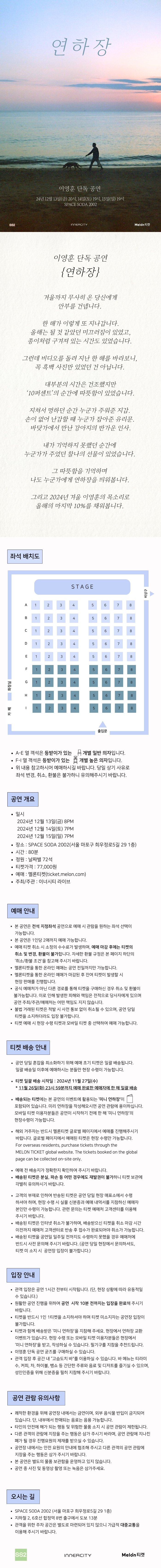 | 유효기간(이용조건) | 2024.12.13 - 2024.12.15 (예매한 공연 회차에 한해 이용가능) | ||||||||||||