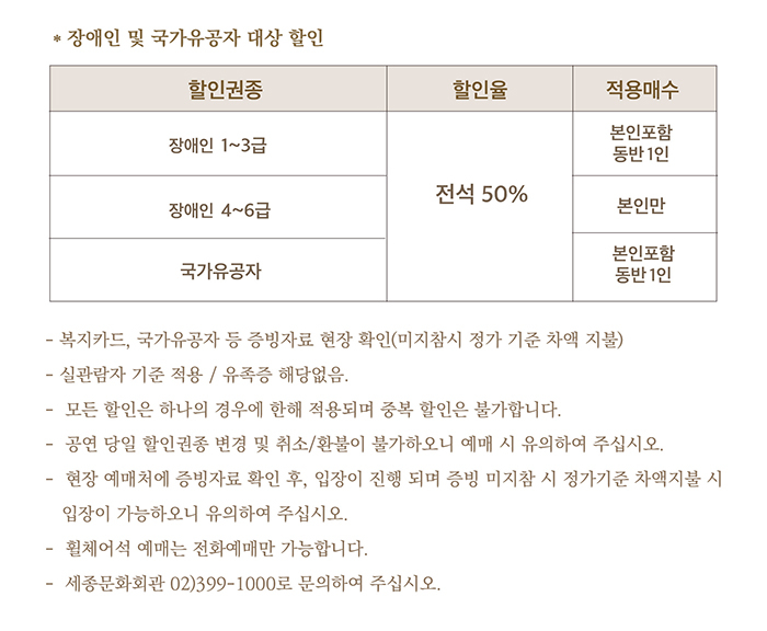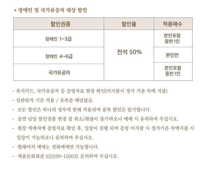 ※ 본 공연은 공연 당일 오전 10시까지 예매가능합니다.