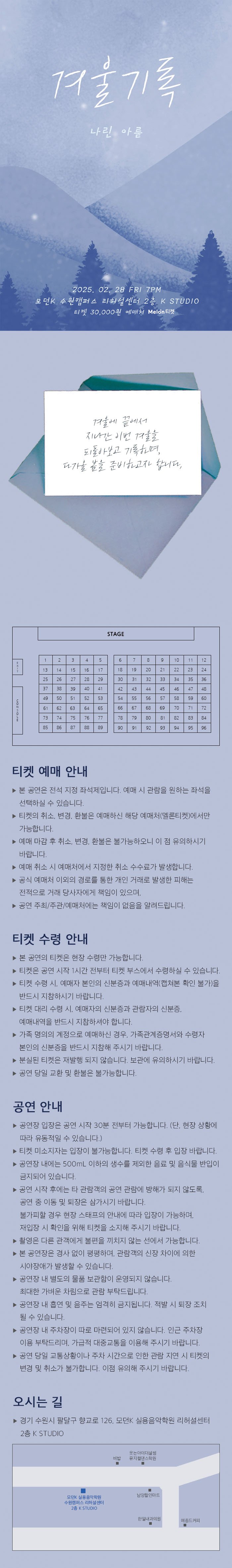 2월 28일(금) 예정되었던 <겨울기록〉- 나린, 아륜 공연은 주관사 사정으로 인하여