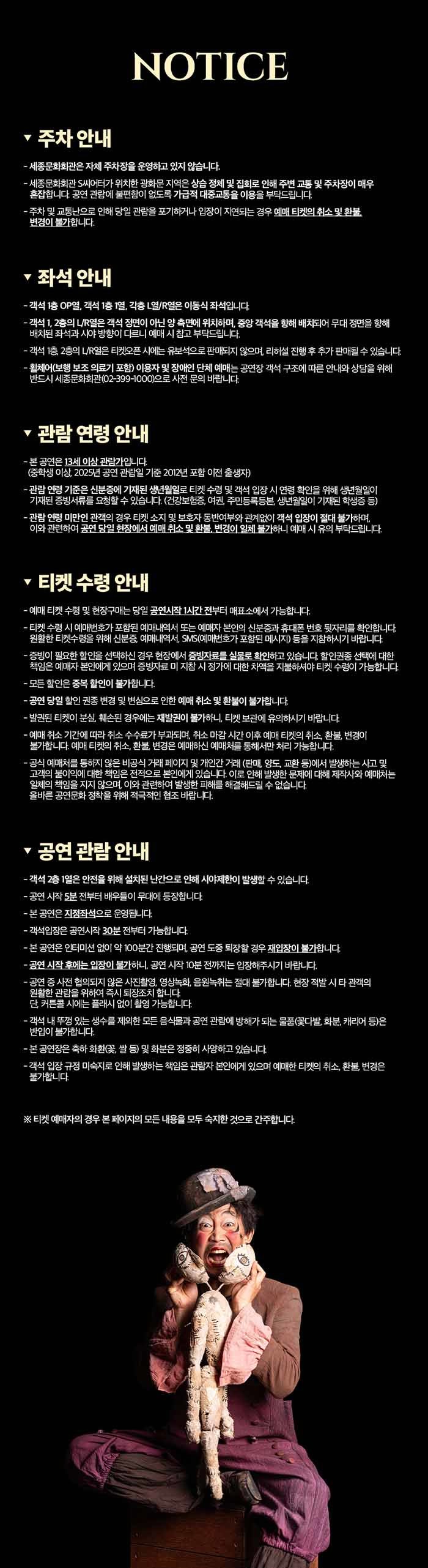※ 본 공연은 공연시간 2시간 전까지 예매가능합니다.