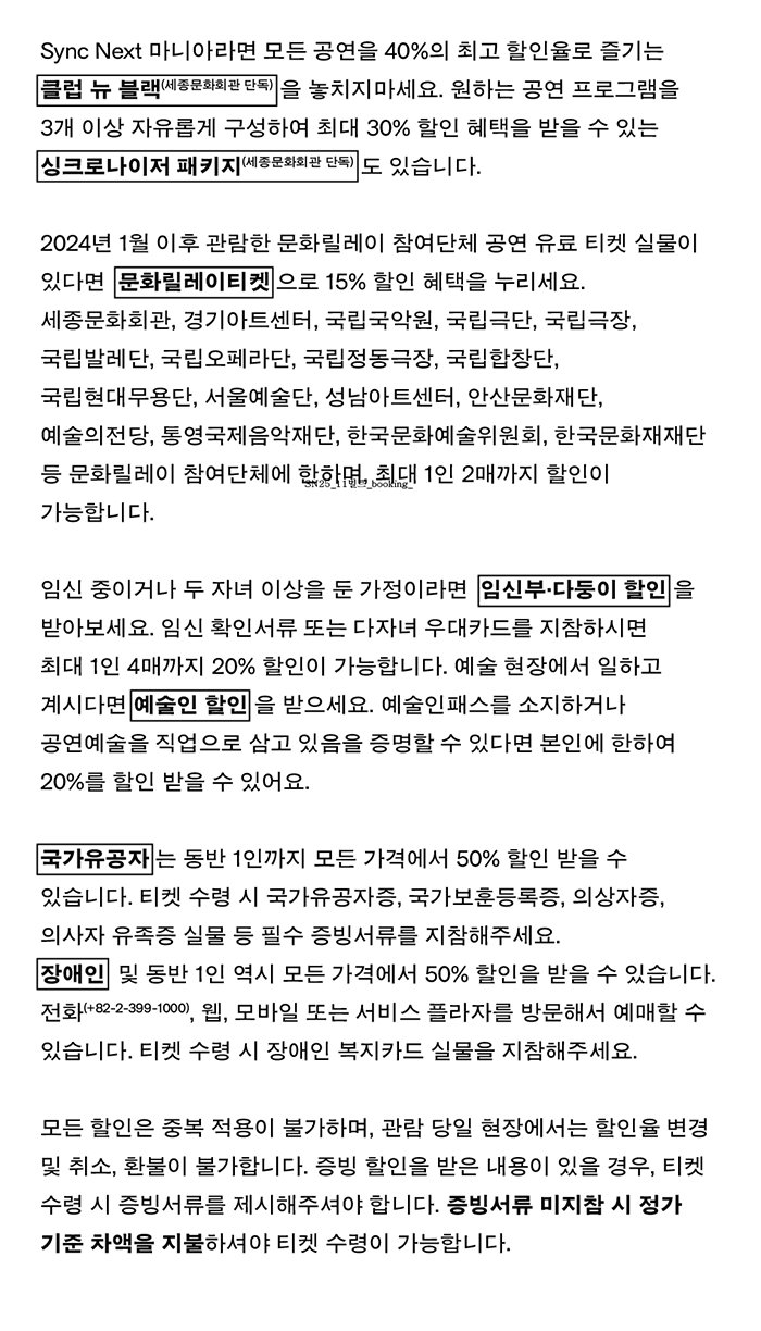 | 공연 관련 문의 | 세종문화티켓 02-399-1000 | ||||||||||||