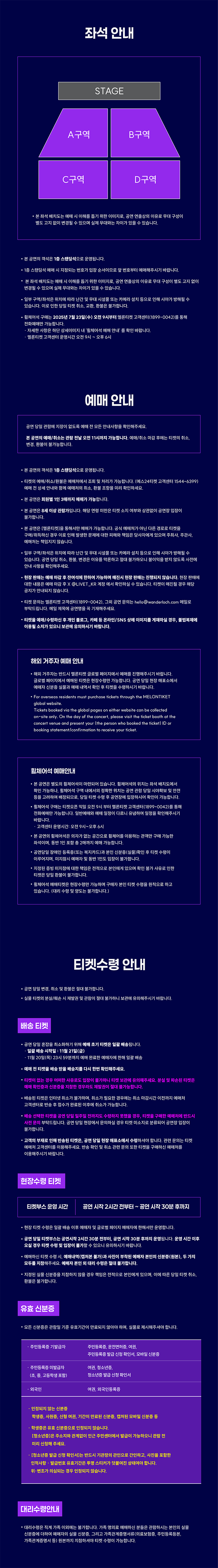 ※ 휠체어석은 7월 23일(수) 오전 9시부터 멜론티켓 고객센터(1899-0042)를 통한 전화예매만 가능합니다. (운영시간 : 평일/주말 09:00 ~ 18:00)