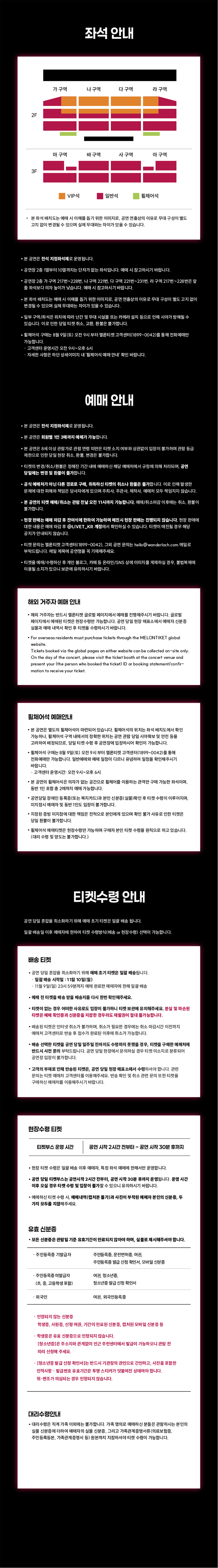 ※ 휠체어석은 8월 9일(토) 오전 9시부터 멜론티켓 고객센터(1899-0042)를 통한 전화예매만 가능합니다. (운영시간 : 평일/주말 09:00 ~ 18:00)