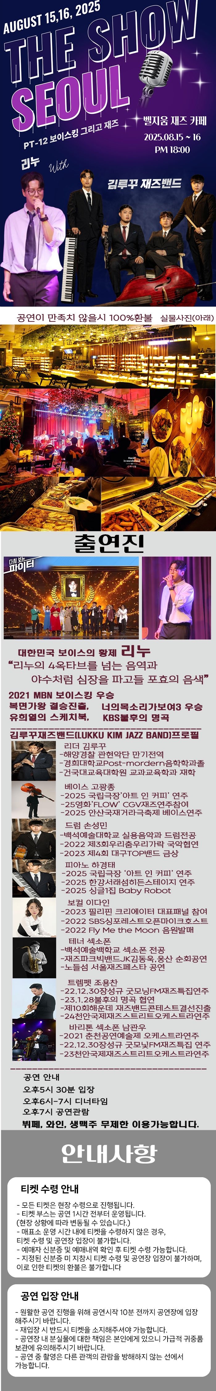 ※ 본 공연은 공연 당일 현장 도착 순으로 입장이 가능합니다. 예매 시 참고 부탁드립니다.
