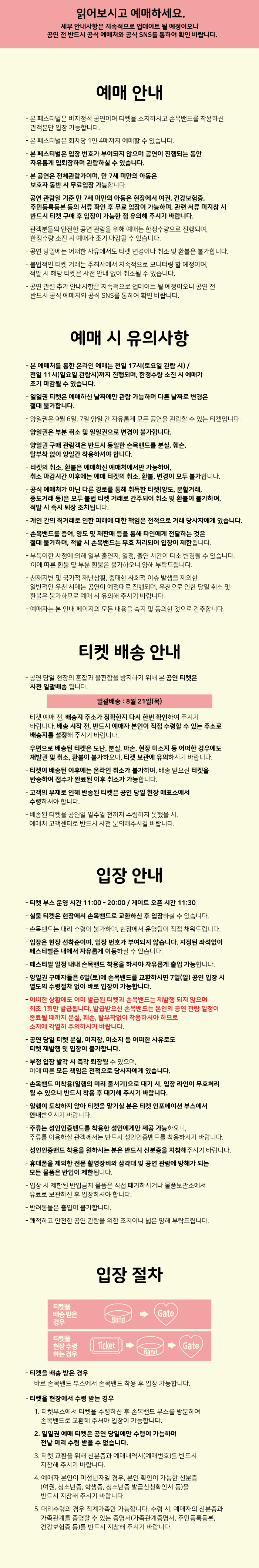 * 티켓 분실 시 재발행이 불가하오니, 보관에 각별히 주의하시기 바랍니다.